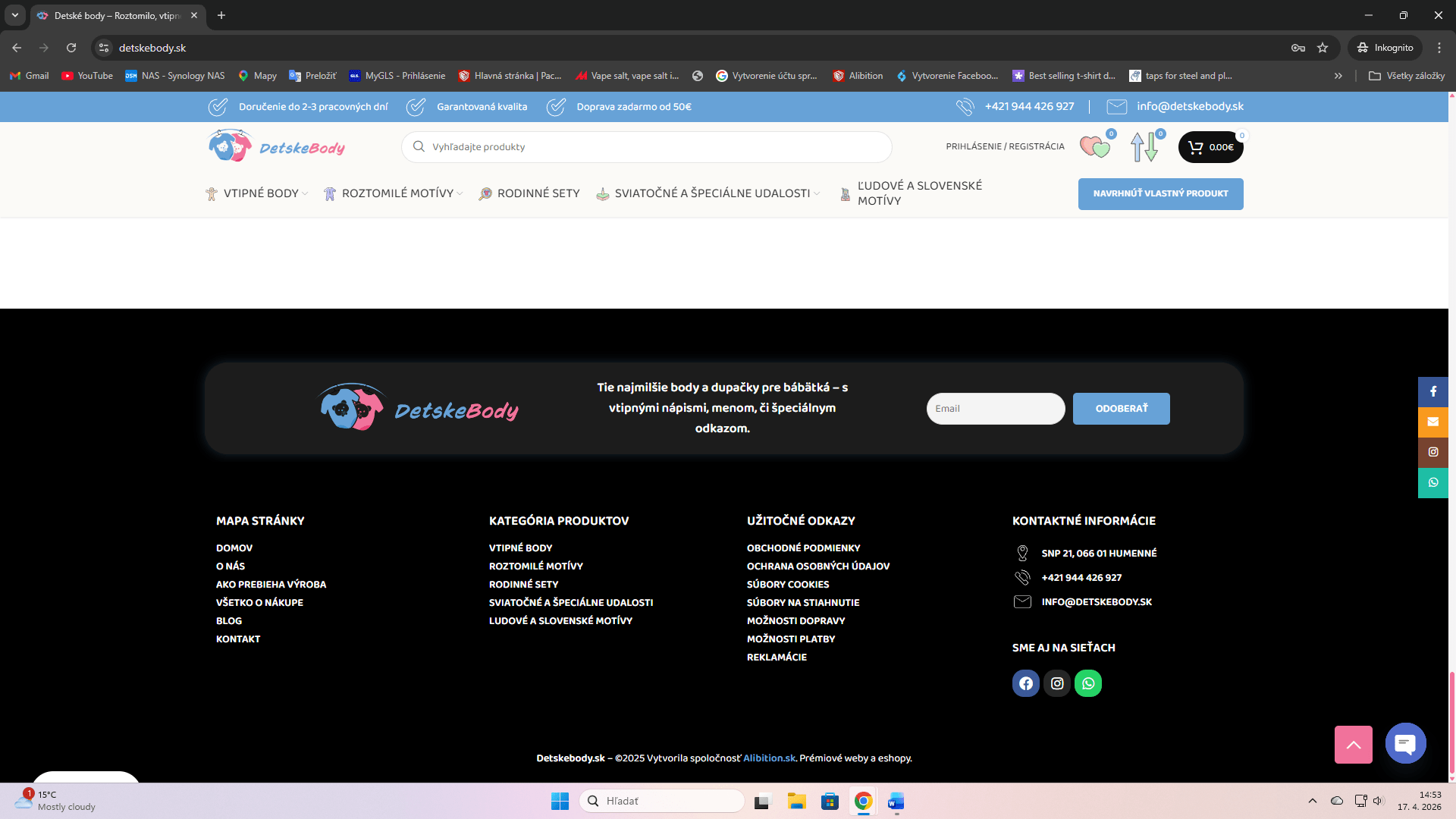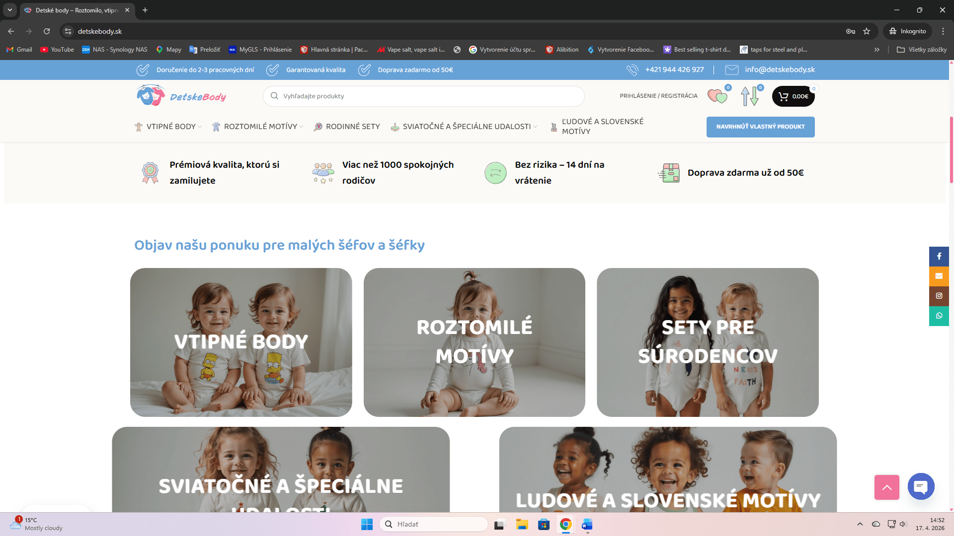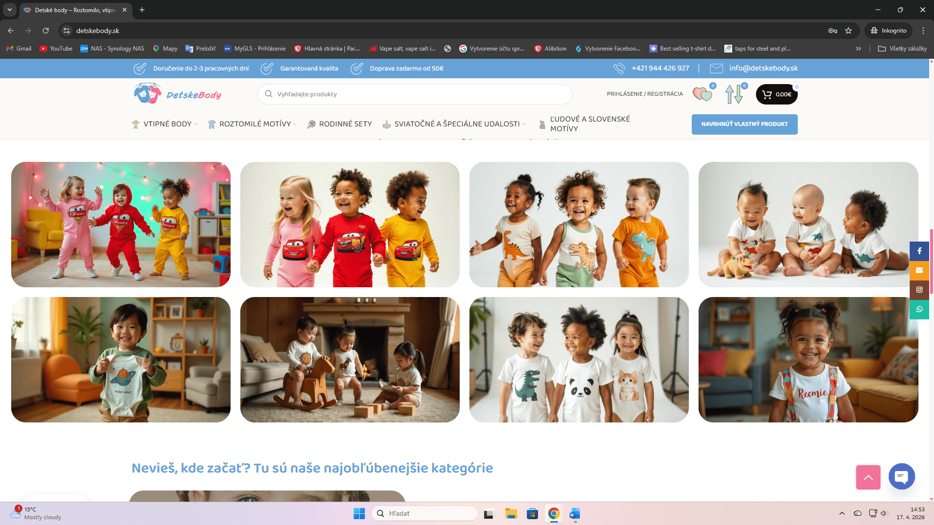 Predám e-shop DetskeBody.sk – projekt zameraný na predaj detských bodyčiek a dupačiek s vysokým emocionálnym aj obchodným potenciálom.