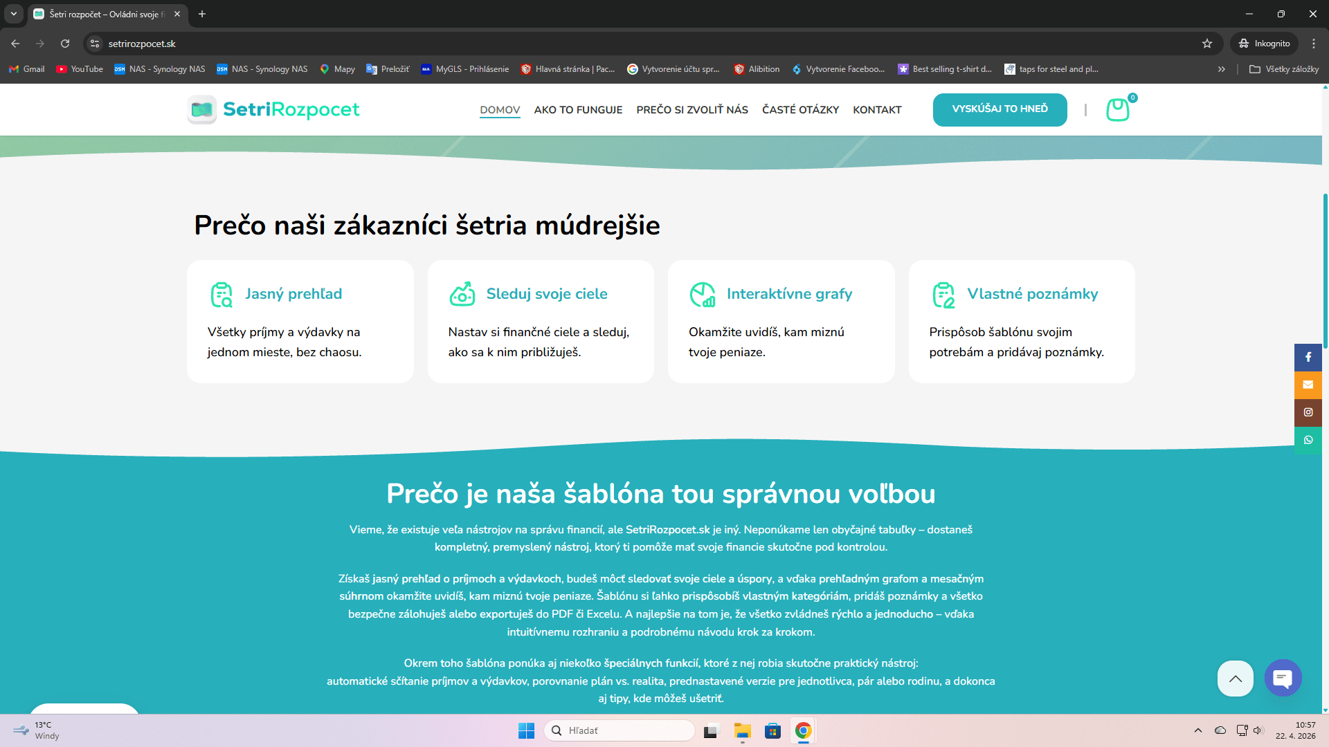 🔥 Predám profesionálne pripravený projekt SetriRozpocet.sk – ideálny na predaj šablón, digitálnych produktov, e-bookov a online kurzov o peniazoch.